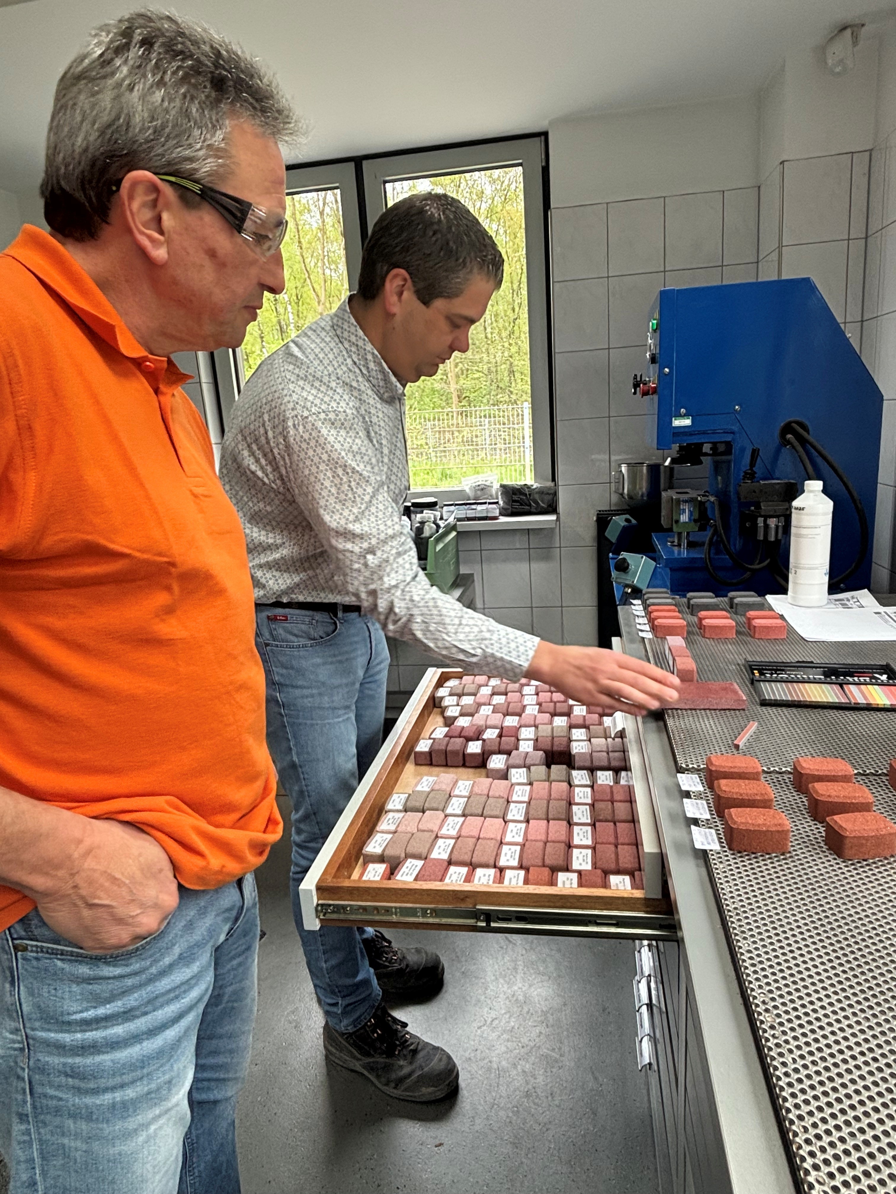 Der Tag begann mit einer kurzen Einführung in Pigmente und Dosiertechnik, gefolgt von einem Rundgang durch Produktion und Labore mit Einblicken in Pigmentmodifizierung, Farbmessung und Live-Demonstrationen im Beton. Abschließend standen praktische Anwendungen, EPDs, unsere Maßnahmen zur Nachhaltigkeit und die Vorteile europäischer Produktion im Mittelpunkt.
